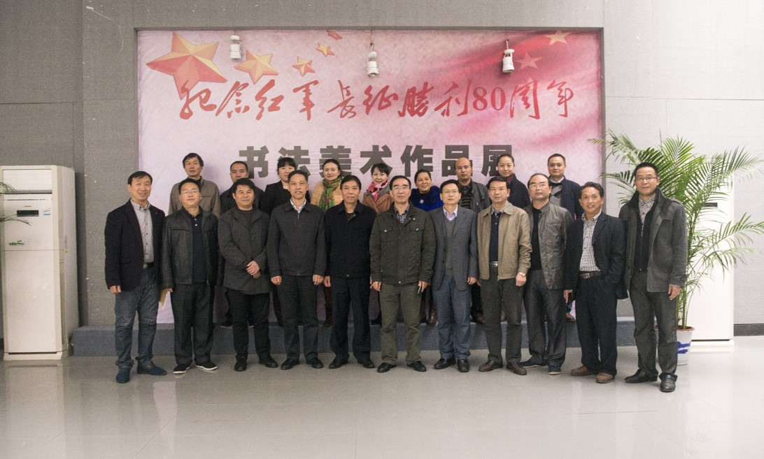 上午,党委书记郭军,党委副书记刘铁铭,副校长蒋建初、周发明、陈志国,纪委书记杨鑫铨,党委委员金志方以及校党政办、纪委、组织部、宣传部、工会、武保处、团委等单位负责人在美术与设计学院领导和老师的陪同下,参观了在美术楼展厅隆重展出的“纪念长征胜利80周年师生书法美术作品展”。