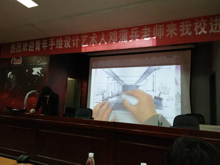 两个小时的讲学过程中,师生们聆听讲授了手绘的用途和技巧,学习了单体和一点透视空间的示范绘画,受益匪浅。在热烈的掌声中,圆满成功的结束了本次讲座。