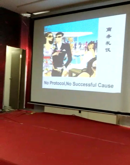2017年4月27日晚七点半,KY官网邀请资深礼仪导师——罗敏芳老师,针对大三学生开展了一场“商务礼仪”讲座,罗老师结合实践经验从商务礼仪意义,技巧,忌讳等方面,为学生进行了深入浅出的剖析,讲座很精彩,气氛很活跃,师生互动激烈,掌声盈溢会场,学生很受益!