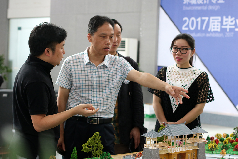 周发明副校长指出:环境设计专业毕业设计展览较好地体现了专业特色,有思路,接地气,从内容到形式都值得交流和推广。周校长希望,美术与设计学院今后要进一步强化师资队伍建设,制定适应美术类各专业学生毕业设计标准,凝练作品主题、形成系列,充分依托于专业,特别是强化学院各专业的融合,实现学院间的跨专业联合,形成产业链,多培养与市场接轨的实践性专业人才。