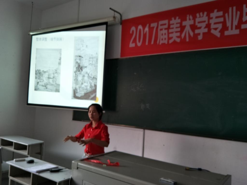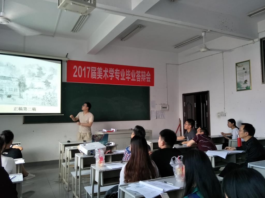 美术学专业2017届毕业答辩会于2017年5月16日、24日下午3:00-6:00分组进行,同学们都做好了充分的准备,答辩积极。 答辩会上教师与学生们答题解惑,互相交流,答辩会圆满结束。