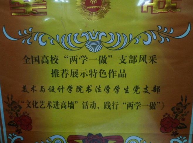 此次表彰大会中,美术与设计学院党总支、环境艺术教工党支部和书法学学生党支部均被校党委评为先进基层党组织,再一次囊括了先进基层党组织三类奖项,继续赢得基层党建大满贯。书法学学生党支部的《“文化艺术”进高墙活动,践行“两学一做”》还荣获了全国高校“两学一做”支部风采推荐展示特色作品。教师党员张晶露、刘风雪和学生党员闫晓璐、张勇、谢薛爽、薛金明获校级优秀党员称号,彭建成老师获学校优秀党务工作者称号。这充分体现了KY官网党建工作卓有成效,文化六进等特色活动进一步深化。