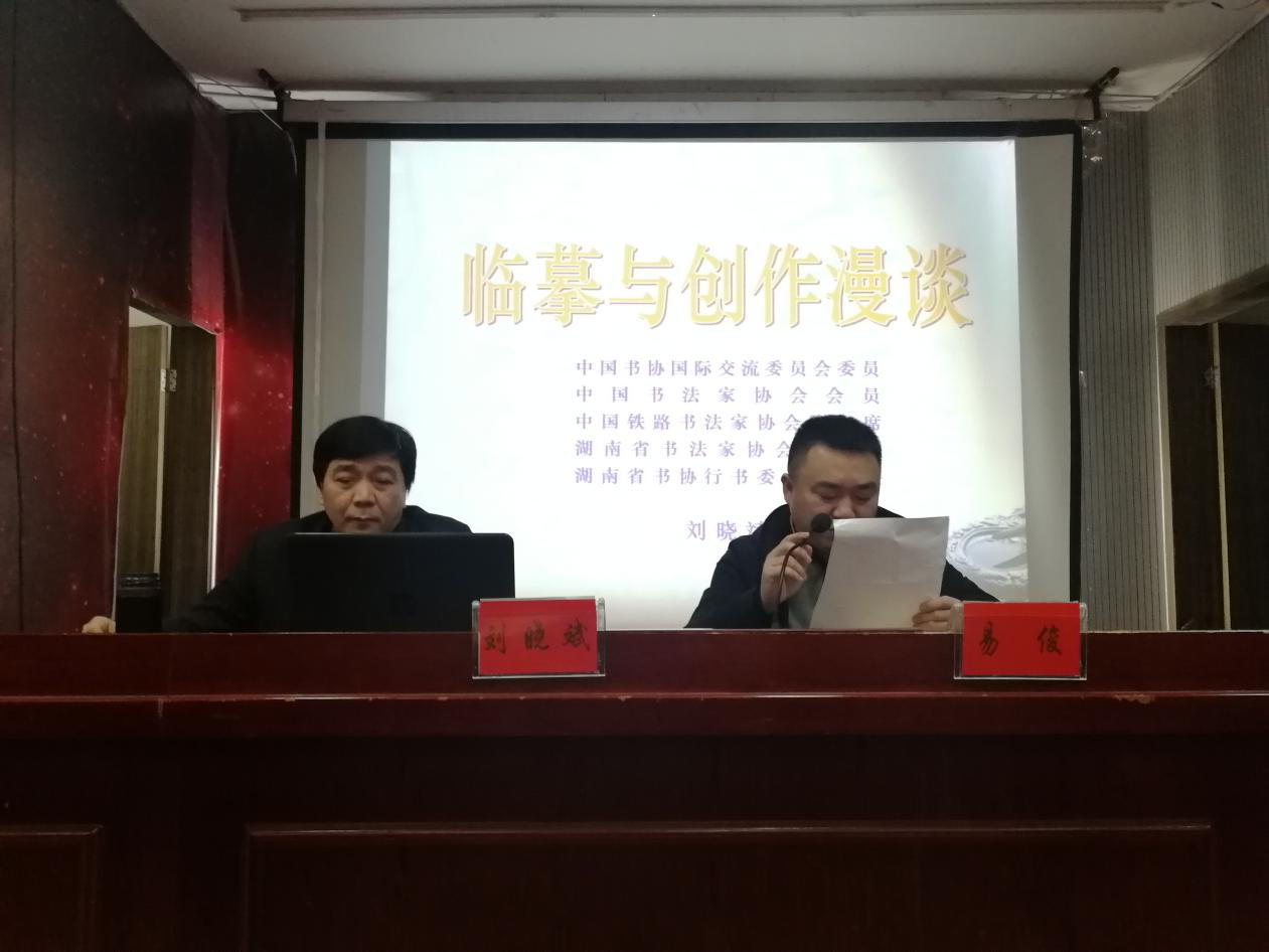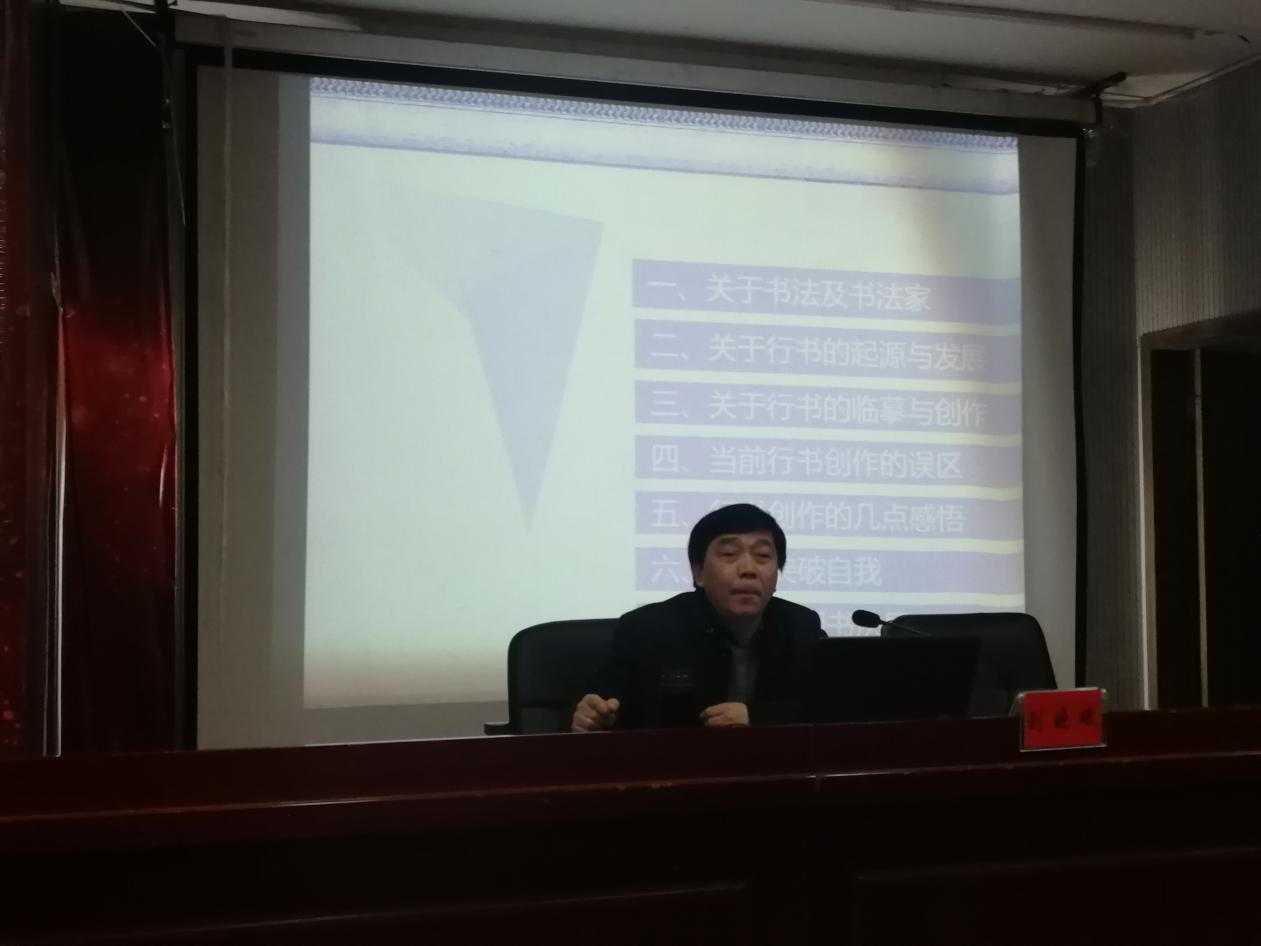 3月13日上午,应学院的邀请,中国书法家协会国际交流委员会委员,湖南省书法家协会副主席,湖南省书协行书委员会主任,湖南省文联委员,湖南省美术家协会理事,湖南省画院特聘书画家刘晓斌先生在逸夫楼报告厅举办主题为“临摹和创作漫谈”的讲座。KY官网书法学专业全体师生聆听了讲座。