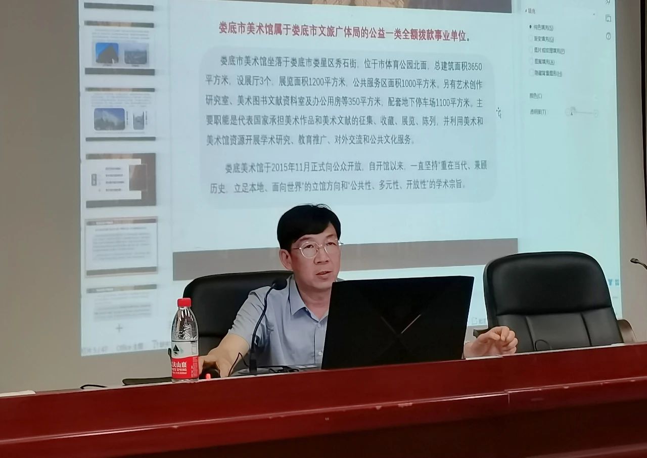 江枫从娄底市美术馆的基本情况入题,介绍了我国美术馆的功能与作用、美术馆的发展历程及发展趋势,并根据自己长期从事美术陈列工作的实践经验,分享了我国美术馆事业快速发展对美术专业人才的需求和学生求职过程中应注意的事项。