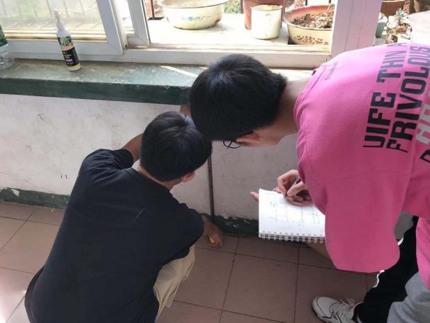 师生党员冒着酷暑,克服部分住户上班不在家、部分住户不愿意合作等困难,深入职工家里,多次交流,坚持不懈,所有小组都找到了合作的住户并认真开展了相应的测量和设计工作。
