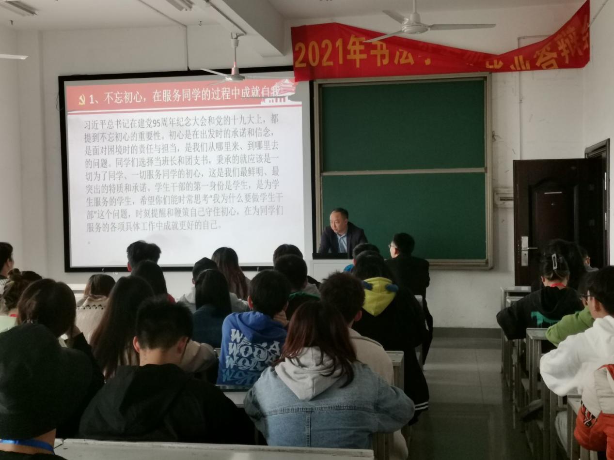 首先,成伟做了题为“践行青春使命,当好学生干部”的讲话,为当好学生干部、做好学生工作提出要求、指明方向。他指出各位学生干部践行青春使命,当好学生干部,核心要义应该体现在四个方面:一是坚定理想信念,提高价值追求;二是扎实勤学苦练,锤炼意志品质;三是涵养科学思维,培育创新精神;四是投身社会实践,明确责任担当。他还给大家提出了三点希望:一是不忘初心,在服务同学的过程中成就自我;二是增强本领,在建设组织的奉献中提升格局;三是营造氛围,在以身作则的示范中锤炼作风。