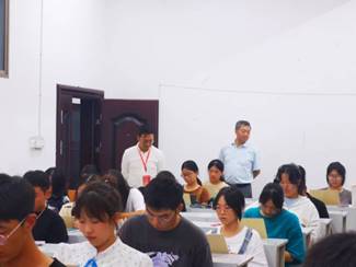 图2学校考试中心主任朱芙蓉带队到考场巡视指导。