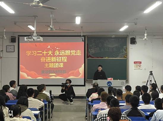 为进一步学习宣传贯彻党的二十大精神,引导广大师生切实把思想和行动统一到党的二十大精神上来,11月2日晚上,校长刘铁铭教授在致远楼211教室为美术与设计学院和材料与环境工程学院的同学们开展了“学习二十大,永远跟党走,奋进新征程”主题团课,美术与设计学院和材料与环境工程学院的副书记、辅导员共同聆听了此次团课。
