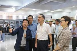 5月17日上午,校党委书记刘铁铭,党委委员、副校长陈志国,党委委员、副校长刘铁峰,党委委员、纪委书记凌艳平在党政办主任李玲军、宣传统战部常务副部长谢柳等陪同下来到逸美楼二楼展厅参观“起航”数字媒体艺术2023届毕业设计展,美术与设计学院领导班子及师生陪同参观。