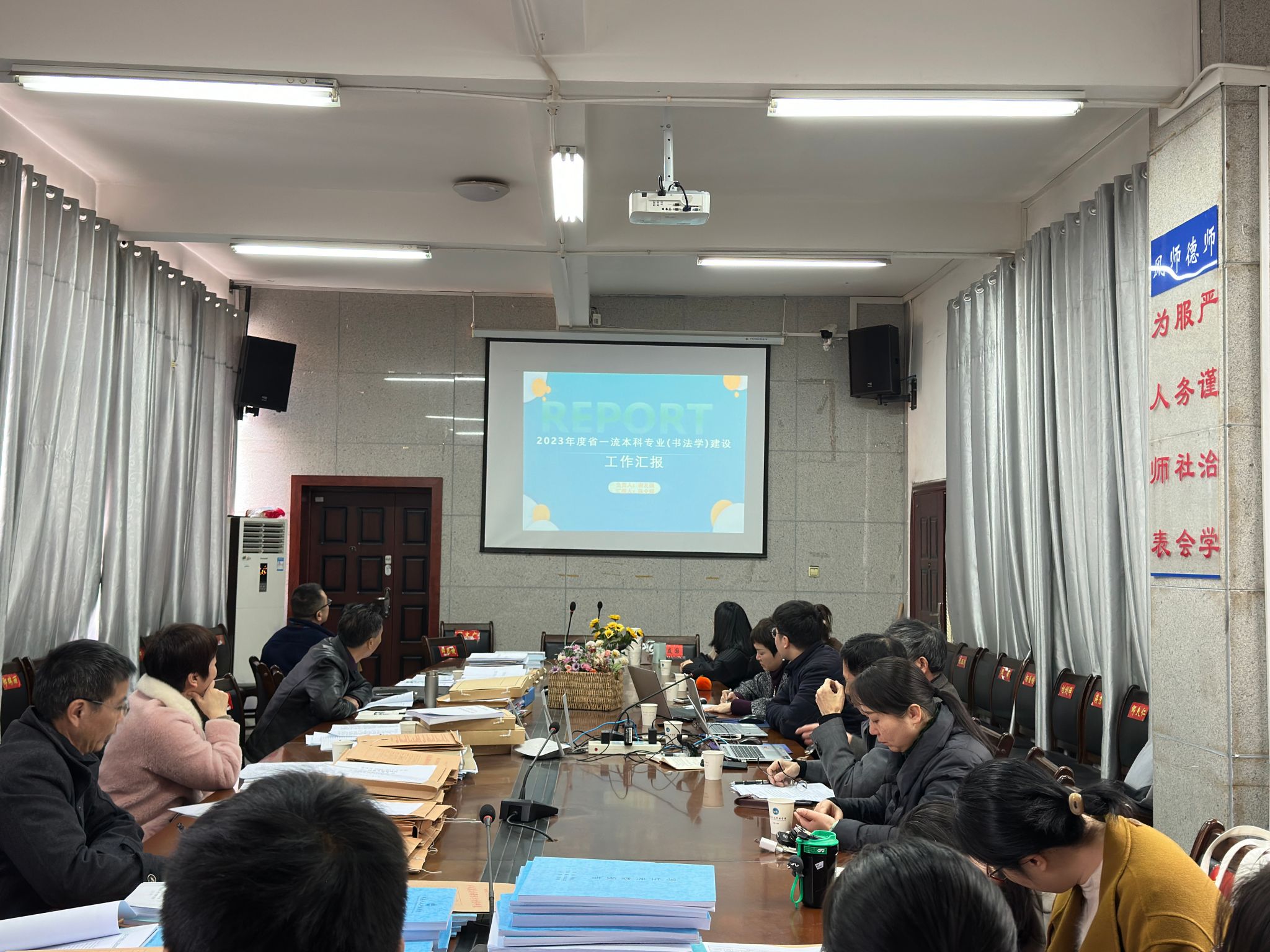 首先,向国红介绍了本次教育教学检查评估工作的步骤和安排,强调了检查的目的和要求。接着,副院长贺平就办学方向与本科地位、培养过程、教学资源与利用、教师队伍、学生发展、质量保障、教学成效等七个方面作了简要汇报;美术学专业负责人陆序彦、书法学专任教师蒋全顺分别就省一流本科专业2023年度专业建设作了工作汇报。