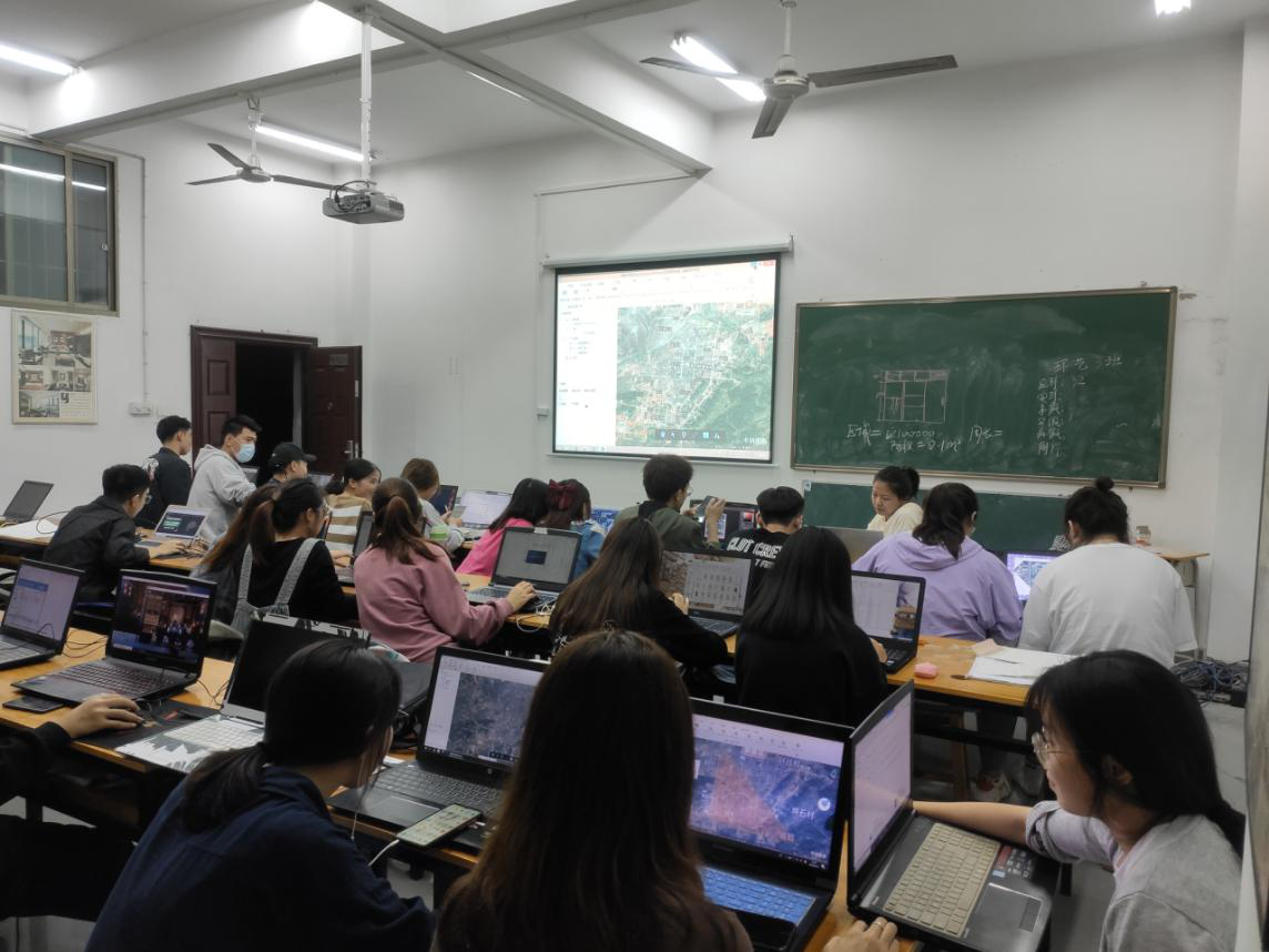 杨培松老师具有系统而扎实的GIS软件基础理论知识和专业技术操作能力,具有一定的实战经验。培训中,杨老师给学生们详细介绍了GIS软件的开发过程、用途,引领学生从导入地形图到用GIS绘画出规划范围,了解到GIS这个软件对于景观方向的设计师、规划师的重要性,每一张图都包含了规划设计师的辛勤付出,让同学们深入地认识了GIS这个软件。同时,杨老师还讲解了实际项目从规划到落地需要经过完整的流程:包括从实地考察、背景分析、总体规划再到详细规划等具体环节。