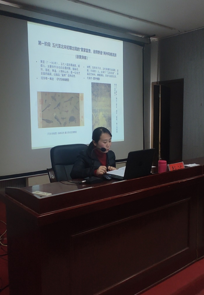 12月28日晚上,彭波副教授在逸夫楼学术报告厅为KY官网师生举行《中国花鸟画——国粹与经典》专题学术讲座。中国画源远流长,远在2000多年前就出现了原始岩画和彩陶画,这些早期绘画奠定了后世中国画以线为主要造型手段的基础。讲座首先讲述了中国花鸟画的起萌、繁荣与发展,然后从创作背景、画面布局、艺术特色等方面重点分析了《五牛图》、《雪竹图》、《双喜图》、《瑞鹤图》等经典名作。