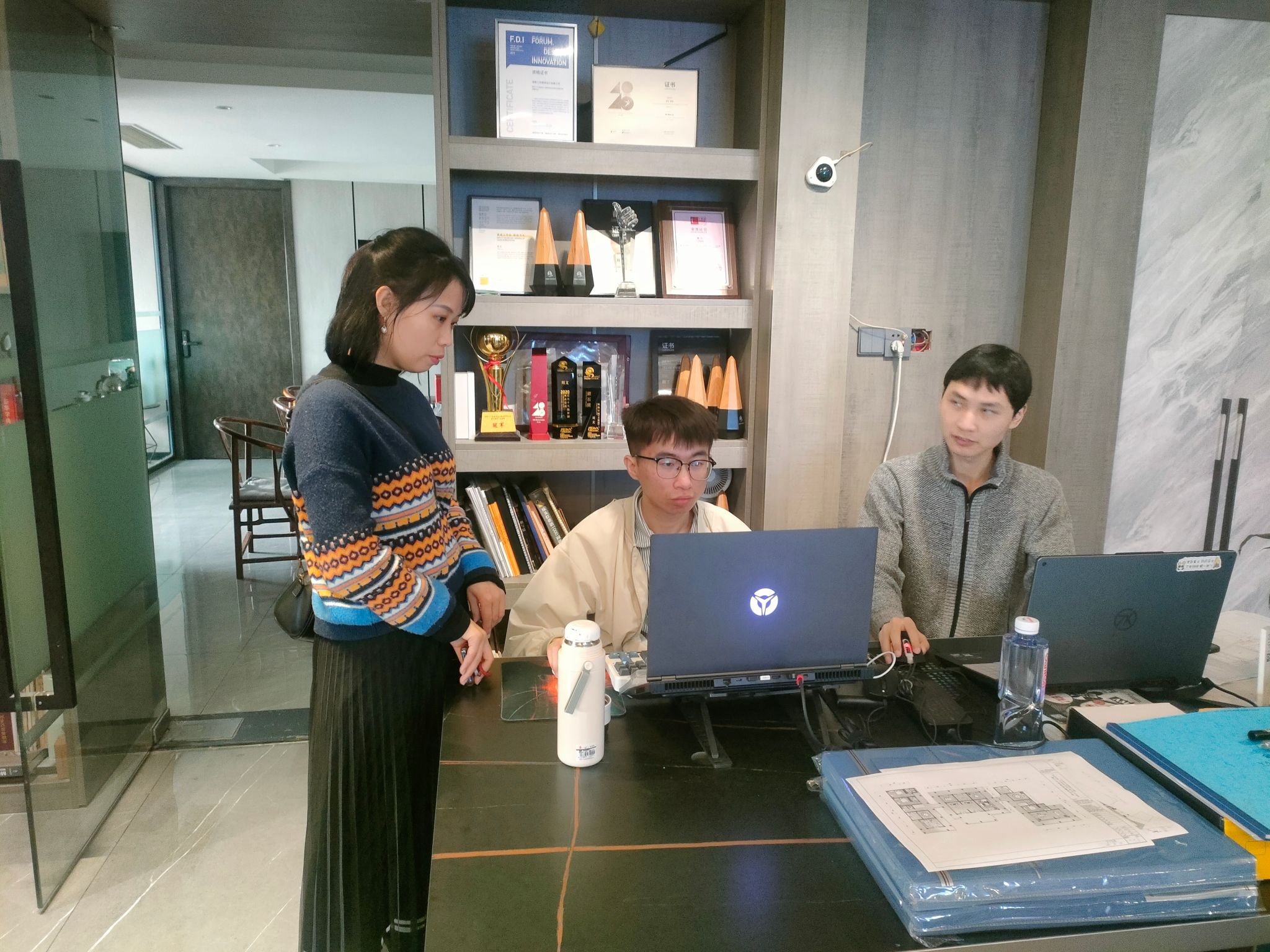 期间,谭娟带领两位教师全面检查了2020级环境设计专业的实习工作,并与企业负责人进行了深入交流。企业负责人分享了行业近年来在市场趋势、施工技术创新、数字化建设、品牌营销等方面的情况。交流过程中,企业负责人非常重视共建产学研合作平台。谭娟向企业介绍了环境设计专业23版人才培养方案和人才需求的定位等。双方决定进一步加强校企合作,促进产学研融合发展,特别是在联合人才培养、校园招聘、实习实训等方面。双方还就进一步挖掘各自优势,拓展合作空间,并就未来合作的具体方式和计划进行了共同探讨交流。