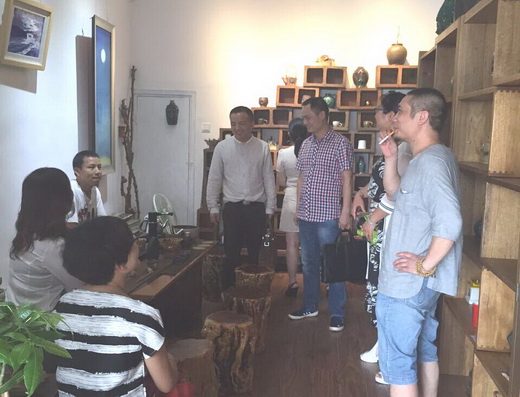 教研室一行考察了中南林业科技大学专业工作室和重点实验室及各专业教室,观摩了部分获奖作品和2015届毕业设计展。在林科大的六工作室,副院长戴向东、副院长兼六工作室负责人刘文海教授、环境设计教研室主任袁傲冰等向我们介绍了企业与专业系部共建工作室、分享以市场为导向、项目为载体、进行技术服务与教学成果转化的成功经验。