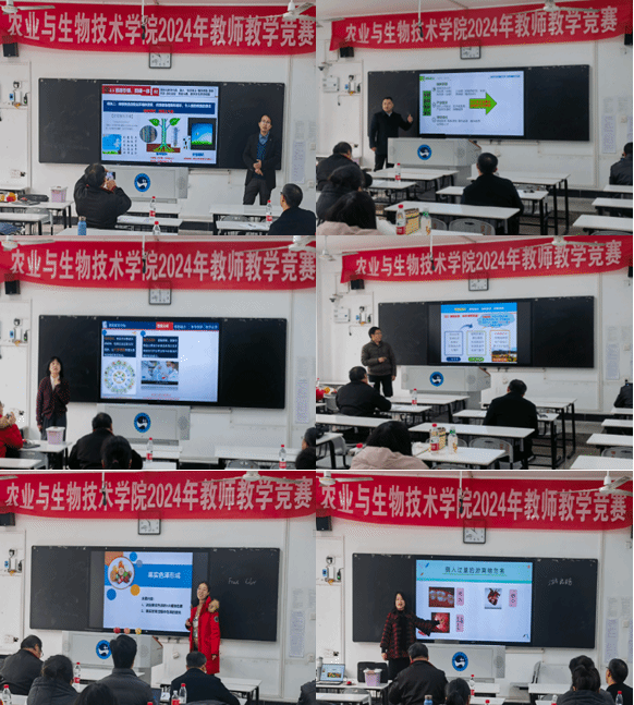 1月7日上午,农生院在致远楼406室开展2024年教师教学竞赛及校级选拔赛活动。活动邀请到校级教学督导杨正德教授、刘显军副教授及院级教学督导曾智博士、谭显胜博士等担任评委。学院专任教师参会,农生院(所)副院长孟桂元主持。
