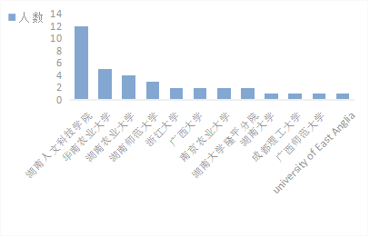 近三年来35人考上研究生。录取学校如图1所示。专任教师指导学生参加各种学科竞赛活动,并获得湖南省互联网+大学生创新创业大赛一等奖1项,全国大学生生命科学创新创业大赛一等奖2项,国家级大学生创新创业训练计划项目10项。