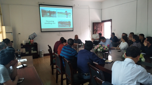 43日下午,在农生院强毅楼309召开了全院教职工大会,会议主要是刘秀,周芸芸两位博士对寒假期间在国外的学习进行交流。