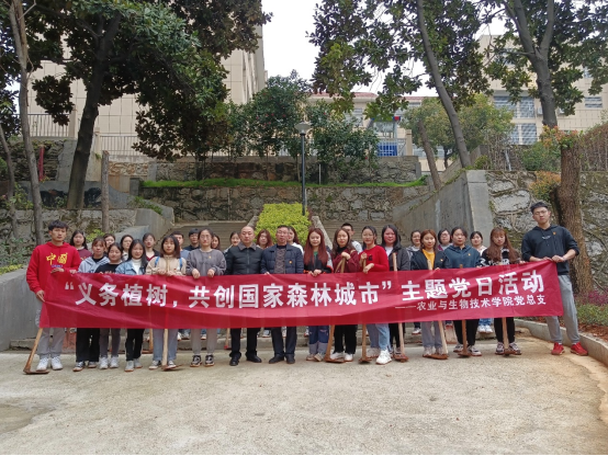 3月14日,农生院党总支组织教师和学生党员在高韵楼前坡、西侧空地开展主题为“开展义务植树活动,共创国家森林城市”的植树活动。园林绿化实训中心、学工办部分教师以及师生党员共50多人参加了植树活动。