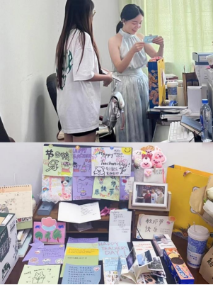 同学们用精美的贴纸和彩带装饰卡片在一张张空白的卡片上勾勒着对老师的感激之情,每一张贺卡都承载着同学们对老师们的真挚祝福;更有不少学生写下了自创的小诗或感谢信,字里行间流露出对老师无私奉献的感激与敬仰。