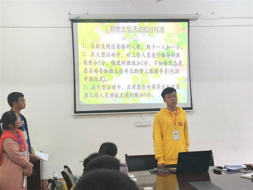 为创建优良学纪学风,鼓励农生院学生勤奋学习,积极向上,增强个人的荣辱感,责任感,提高班级的凝聚力,由此农生院举办月量化会议。参与本次会议的有辅导员聂桓老师,学生会各部门部长及农生院各班班长。