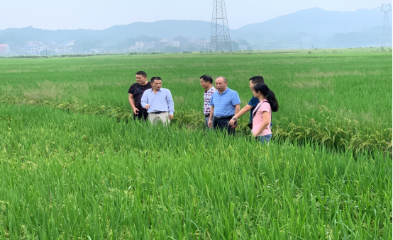 在农民学员童灿辉、周克强等的陪同下,专家服务团队来到杨市万亩水稻种植基地查看了水稻的长势情况。时值盛夏,禾苗竞相抽穗拔节长高,一片欣欣向荣的景象。但也有一小部分的禾苗长势欠佳,受到了虫害的侵扰。在精准把脉后,高级农艺师朱赞江针对稻田存在的亟待解决的问题一一做了答复,对稻田管理、施肥、病虫害防治等技术方面的问题做了详尽的说明。通过交流探讨,农民学员表示,一定要在专家服务团队的技术支持下,搞好水稻生产,保证2022年水稻种植再丰产丰收。