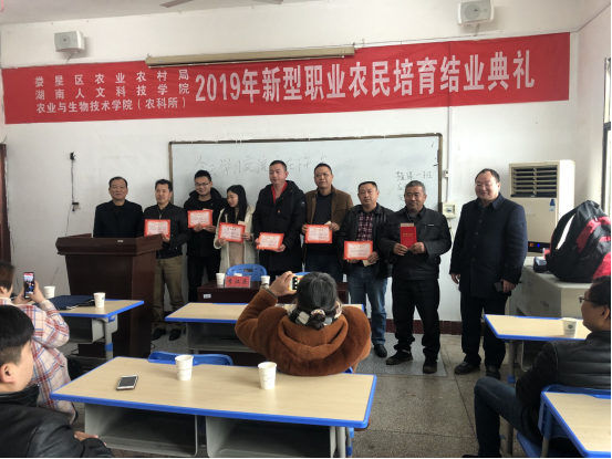 12月26日,第二期娄星区新型职业农民培育结业典礼在农生院强毅楼601举行。娄星区农业局科教股股长李汉庆,农生院副院长(农科所副所长)康林峰、带班教师和农民学员出席了结业仪式。会议由康林峰主持。