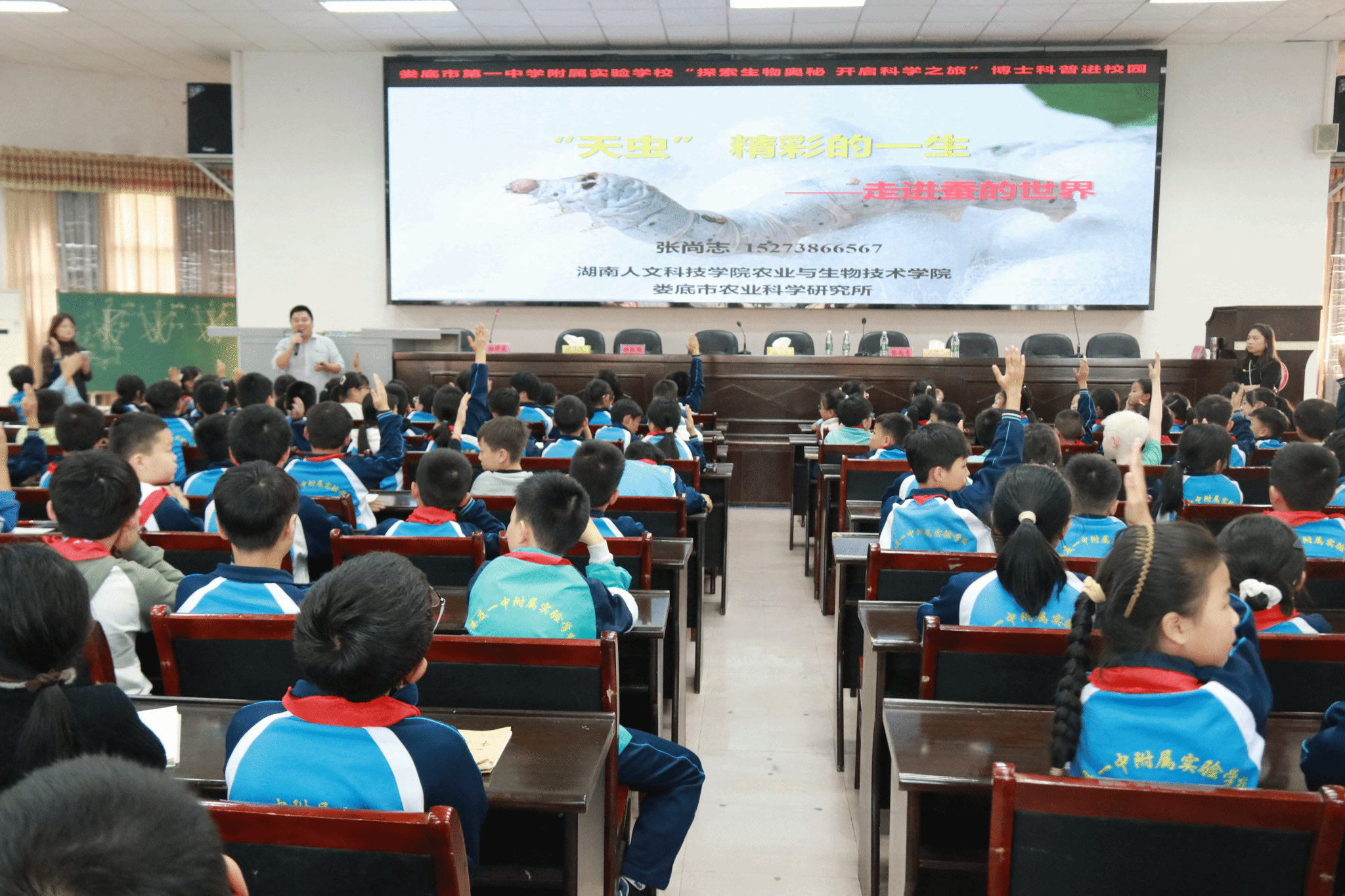 活动伊始,娄底一附副校长钟红雨致欢迎词。她指出,科学是人类进步的阶梯,此次科普活动特邀请到了KY开元集团官网入口的杨泽良博士和张尚志博士,是同学们探索生物奥秘,增长生物知识,培养科学素养的好机会。随后,杨泽良博士带来“植物中的‘欺骗专家’”讲座,为同学们打开了解植物世界的窗户,展现了其在观赏植物快繁技术、植物生理生态等方面的科普知识。接着,张尚志博士开展“‘天虫’精彩的一生——走进蚕的世界”科普讲座,凭借其在家蚕养殖、利用及抗性机制方面的专业知识和研究成果,让同学们深入了解蚕的奥秘。同学们积极参与博士的提问环节,有问有答,会场气氛热烈,响起一阵又一阵热烈的掌声。