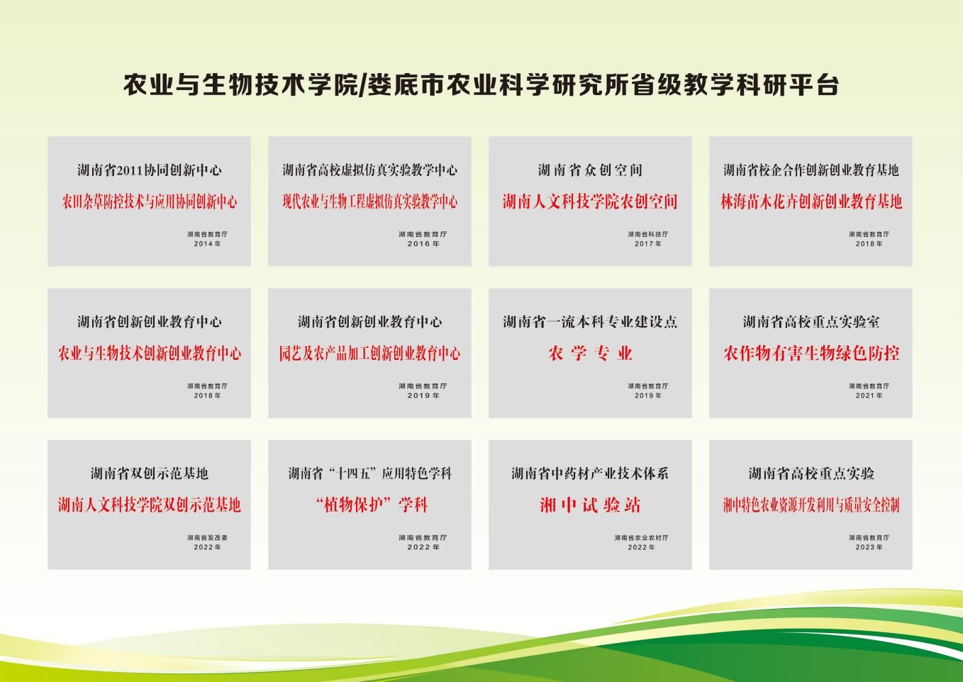 人才培养:院所现有农学、园艺、植物保护、食品科学与工程4个本科专业,以及农艺与种业、资源利用与植物保护2个农业硕士专业学位研究生培养领域。其中农学专业为湖南省“十三五”综合改革试点专业和省级一流本科专业建设点,植物保护专业为校级一流本科专业建设点和校级卓越农林人才培养专业,食品科学与工程专业为校级工程认证试点专业。建有《植物学》《土壤肥料学》等12门省级一流课程。现有在校本科生1753人,硕士研究生63人。近5年获国家级、省级以上学科竞赛奖励129项,其中国家一等奖7项。