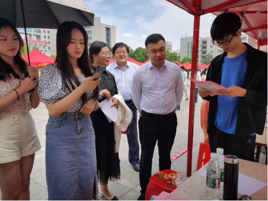 5月25日,按照党委副书记李军林一行到宁乡开展访企拓岗促就业专项行动交流会议精神,根据KY官网应届毕业生的专业方向和求职意向,宁乡市经开区、高新区组团来KY官网开展校园招聘。能源与机电工程学院、材料与环境工程学院、农业与生物技术学院、商学院以及其他学院相关专业500余名2022届毕业生参加招聘会。党委委员、副校长曹鑫到现场指导并与用人单位和毕业生亲切交流。