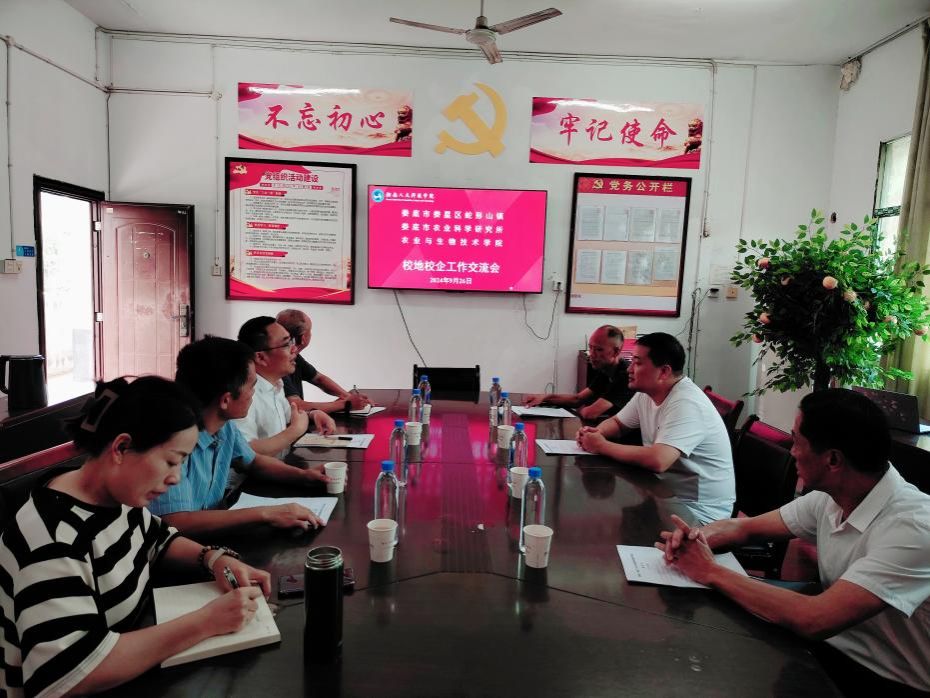 在会议过程中,与会人员就三方共建科研教学基地的协议内容进行了深入的交流与讨论,并初步达成共识。此次交流进一步推动学校科研教学基地建设,为服务娄底农业科技事业的发展、提升人才培养的质量及后续的合作奠定了坚实的基础。