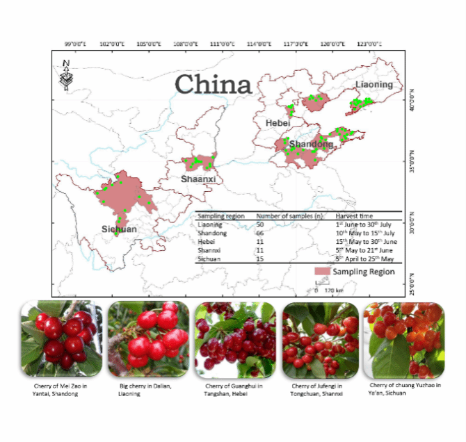 本研究调查中国不同省份采集的樱桃样品的稳定同位素与多元素特征,分析其与灌溉水和耕种土壤的相关性及产地微气候调控同位素分馏及元素富集机制。构建我国樱桃产地特征数据库,建立了非监督与监督两类化学计量学分类判别模型,实现中国不同省份樱桃产品的溯源,判别精度超90.9%。能够确保我国樱桃原产地标签标识真实性,对维护市场诚信和消费者权益具有重要意义。