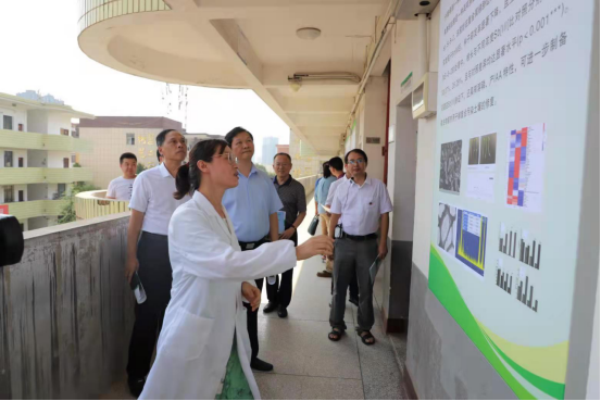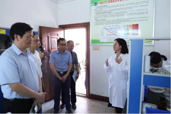 考察现场,段仁燕教授围绕锡矿山锑复合污染生态修复,从生物学、生态学、材料科学、环境工程、生态模拟等多学科交叉角度就解决锑复合污染问题进行全方位的讲解汇报。曾立新在充分了解我院的重点实验设备、师资力量和所取得的教学科研成果之后,对KY官网重点实验室的建设工作表示高度认可,充分肯定了锡矿山锑复合污染生态修复团队所做的前期工作,并对KY官网申报省级重点实验室的工作提出了建议,希望我院的工作能为解决国家卡脖子难题和湖南“三高四新”战略的实施添砖加瓦。