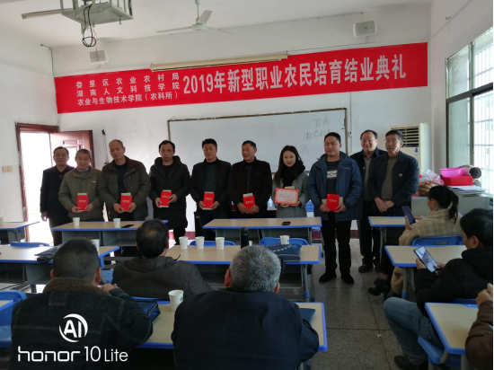 12月2日,在农生院强毅楼601举行娄星区2019年新型职业农民第一期培育结业典礼。娄星区农业局科教股股长李汉庆,农生院副院长(农科所副所长)康林峰、带班教师和农民学员出席了结业仪式。会议由康林峰主持。