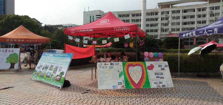 农业与生物技术学院心理部于2019年5月24日下午,在海园广场正中心和其他十三个院系心理部一起展了心理活动展板游览会。