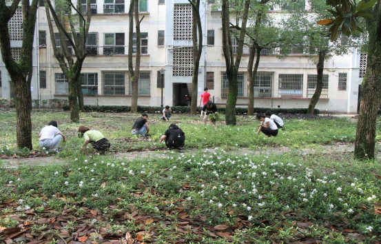 上半年因为雨水充沛,导致校园绿化带内长满杂草,以毓师园、五义苑、三才苑比较突出。活动开始后,党员以小组为单位到达指定区域。由于绿化面积较大,植被生长茂盛,杂草分布点多,清除杂草并非易事,但这些并没有难倒同学们。烈日下,同学们的额头上都冒出豆大的汗珠,可谁也没工夫去理会,有的同学拔草蹲的时间久了,脚麻了,站起来休息一下继续干,有的同学对草过敏,但是他们没有一句怨言,依旧奋战在草丛中。人多力量大,一个多小时,杂草就被清理了出来,绿化带变得整洁美观,校园环境变得更加靓丽。