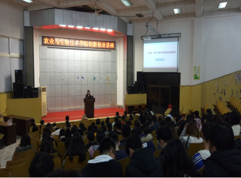 2017年1229日上午9:00,农业与生物技术学院举办的以创新创业为主题的讲座在匠成楼报告厅举行