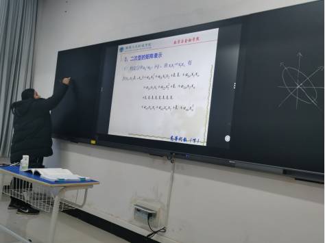 第1节课,郭育青处长、曾真飚副处长随机聆听了应数教研室史卫娟老师执教的《高等代数一》,课后在会议室与史卫娟老师进行了亲切交流与评课,郭处长肯定了史卫娟老师课前准备充分,课件制作精美,语言流畅,粉笔板书工整,推导过程思路清晰,具有魅力青年教师的潜质,同时对如何优化课堂教学提出了自己的建议。史卫娟老师表示对教学将会不断锤炼,不断提升,不断创新。