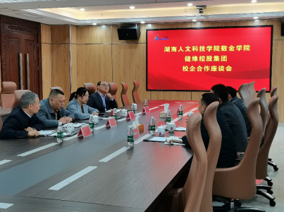 12月14日上午,数学与金融学院院长李军成、副院长龙志文、信息与计算科学教研室主任杨炼、刘成志博士一行四人赴娄底经济开发区健缘控股集团调研并洽谈校企合作事宜。