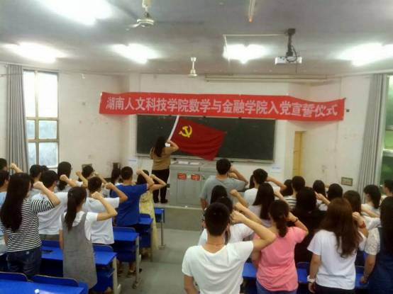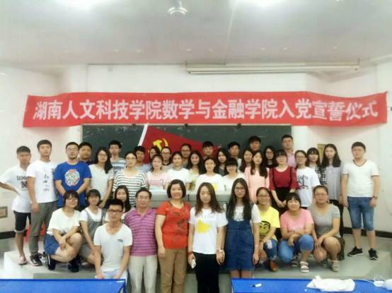 2016 6 15 ,数学与金融学院信计与金融工程学生党支部与数学与应用数学学生党支部在致远楼120教室举行了庄严的新党员入党宣誓仪式。数学与金融学院党总支高平书记、周兰副书记、学生党支部书记张蔚、史卫娟,13名学生党支部正式党员和25名预备党员参加了此次宣誓仪式。仪式由学生党支部书记史卫娟主持。