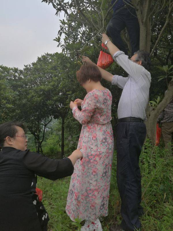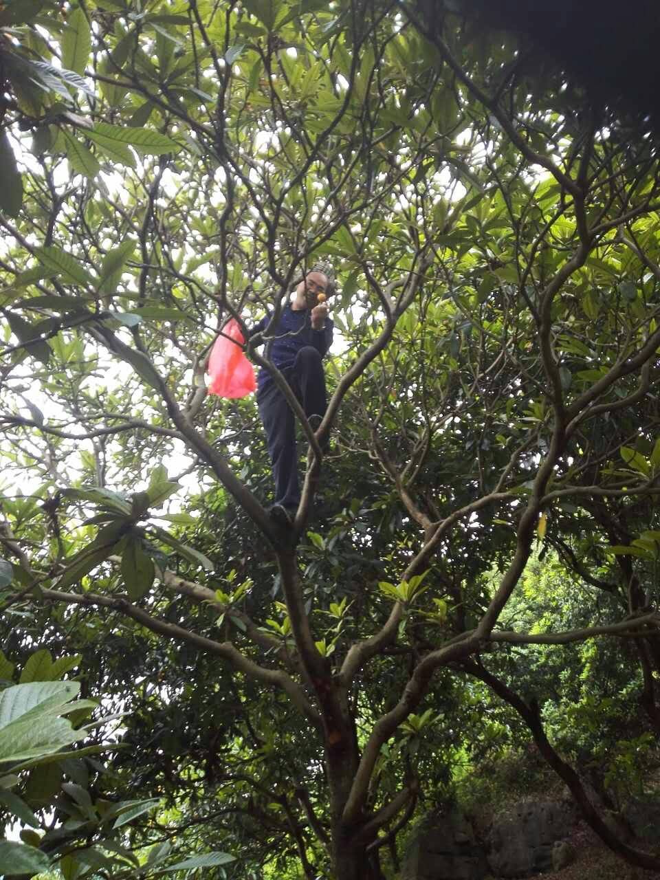 来到枇杷树旁,闻着枇杷成熟发出的芳香,呼吸着树叶散发的清新,心情格外舒畅。使我们不由想起:醉翁之意不在枇杷,在于采摘带来的快乐也!心动不如行动,没有顾忌自己的身份,没有在意自己的年龄,就像一群群小伙子爬在树间,一边品尝一边采摘,动手的快乐、品尝的喜悦、欢快的笑声溢满乡村。