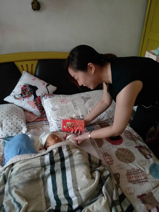 分工会主席代表学校和学院为新生宝宝送去慰问金