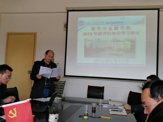 为迎接2019年教育部和省教育厅对KY官网的本科教学审核评估工作,认真贯彻“以评促建,以评促改,以评促管,评建结合,重在建设”的工作方针,做好全面启动本科教学审核评估工作的准备,数学与金融学院领导在思想上高度重视,于第3周周二(3月12日)下午的政治学习中启动审核评估知识的学习研讨。