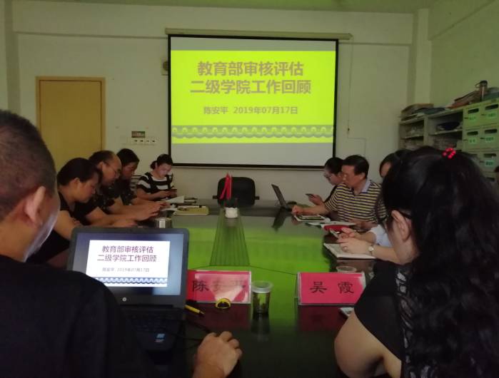 陈安平院长通过“评估动员、任务分解、材料准备、评估三阶段、审核评估期间组织”,阐述了审核评估是一个从学校层面——教育厅层面——教育部层面环环相扣、循序推进的工作,因此二级学院顶层设计尤为关键,强调了管理者层面必须要备齐的几大“硬件”:十三五专业建设规划、教学大纲、人才培养方案等,同时展板宣传、文化氛围建设、提高评估意识也是不容忽视的重要因素。