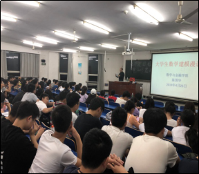 颁奖结束后,陈国华教授首先讲解了何为“数学建模”以及“大学生如何参加数学建模”,接着,通过一个简单数学建模案例展示了数学建模与生活的紧密相关性并说明数学建模来自社会实践,最后,介绍了KY官网在全国大学生数学建模竞赛中取得的好成绩,并向同学们介绍了KY官网今年的相关数学建模竞赛活动的安排,鼓励大家积极参加2019年的全国大学生数学建模竞赛。