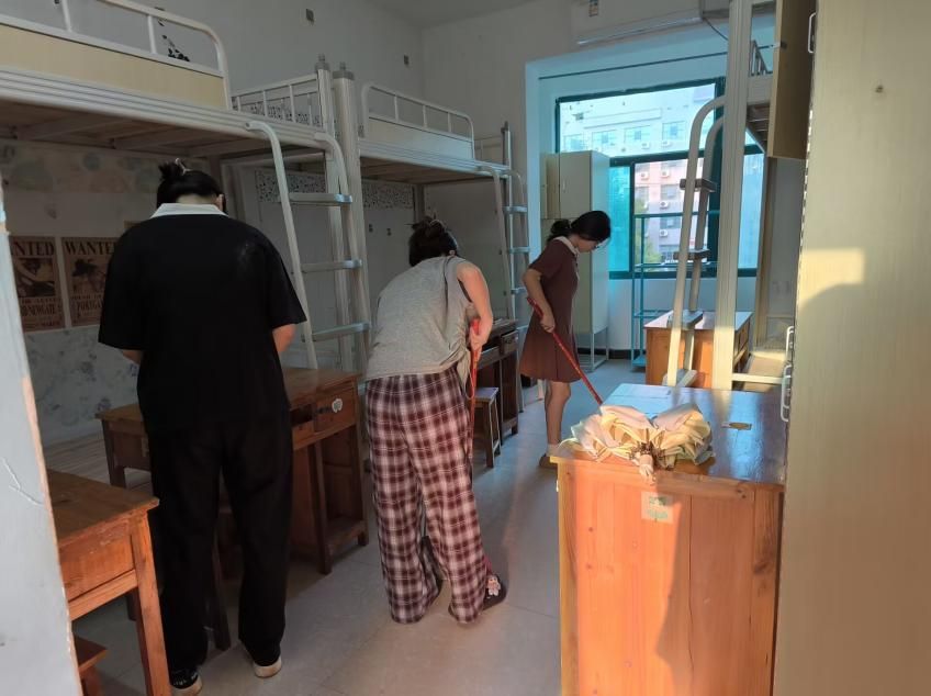 9月9日,在数学与金融学院新生寝室里,一场极具意义的志愿活动有序开展着。在新生即将到校报到之际,众多热情的数金学生志愿者主动承担起为新生寝室打扫卫生的责任。