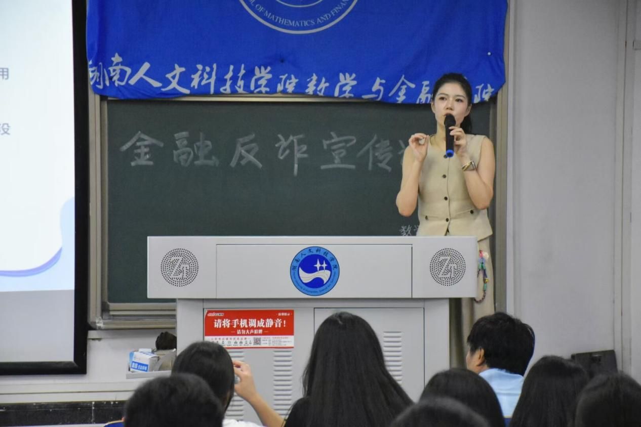 为了揭秘诈骗套路,守护师生财产安全,6月16日晚,数学与金融学院于致远楼520教室精心开展了一场“金融反诈安全课堂”主题讲座。此次活动由辅导员宋伟老师主持,并特邀国新证券娄底营业部资深金融讲师蒋萍现场授课,各班学生代表积极参与,共同为构筑校园反诈防护墙贡献力量。