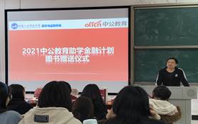 活动伊始,龙承星对中公教育来KY官网进行赠书活动表示衷心的感谢,并用自己的求学经历,勉励同学们多读书读好书,不管是考研还是就业,都应该做好充分的准备。“书中自有颜如玉,书中自有黄金屋”,希望同学们以此为契机,以书为师、以书为伴、以书启智、以书修身,去实现人生一次次飞跃。他强调,赠书赠的不仅是图书,更是知识、是财富、是智慧、是明天的希望,就让我们一起播下春天的种子、希望的种子,期待秋天的“金榜题名”。