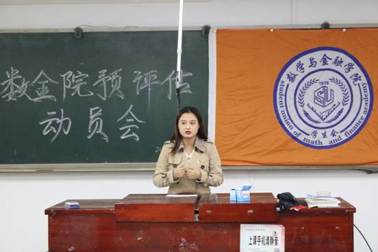 1012日中午,数学与金融学院在致远楼320教室召开了预评估学生动员大会。全体辅导员、学生会干部、各班班长、团支书、寝室长参加了此次会议,会议由学生会主席周楚佳主持,。
