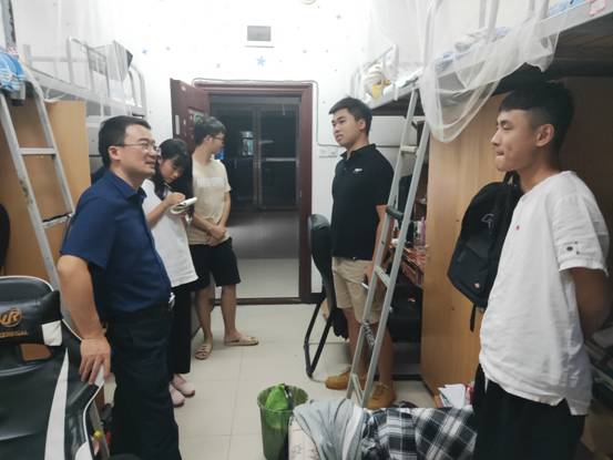 会议结束后,阳立新书记带队组织参会人员进行学生宿舍大查寝。查寝人员兵分四路,重点清查学生返校情况、内务整理及宿舍安全摸排等情况。