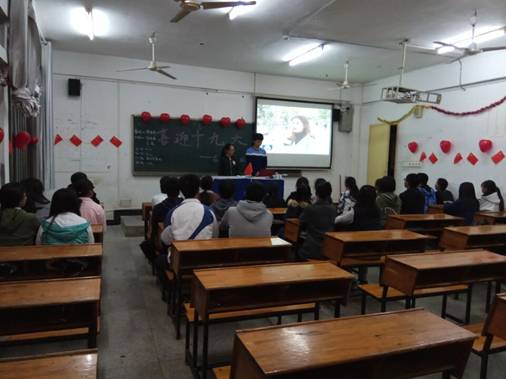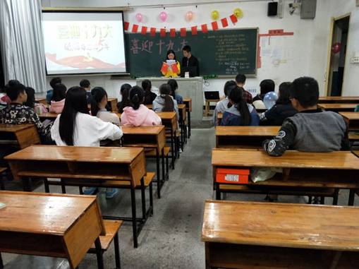 今日是中国共产党第十九次全国人民代表大会召开的日子,为了庆祝十九大的顺利召开,数学与金融学院于20171018日在大一各班级开展了以"喜迎十九大"为主题的班会活动。班会在慷慨激昂、雄壮有力的中华人民共和国国歌中拉开了序幕。